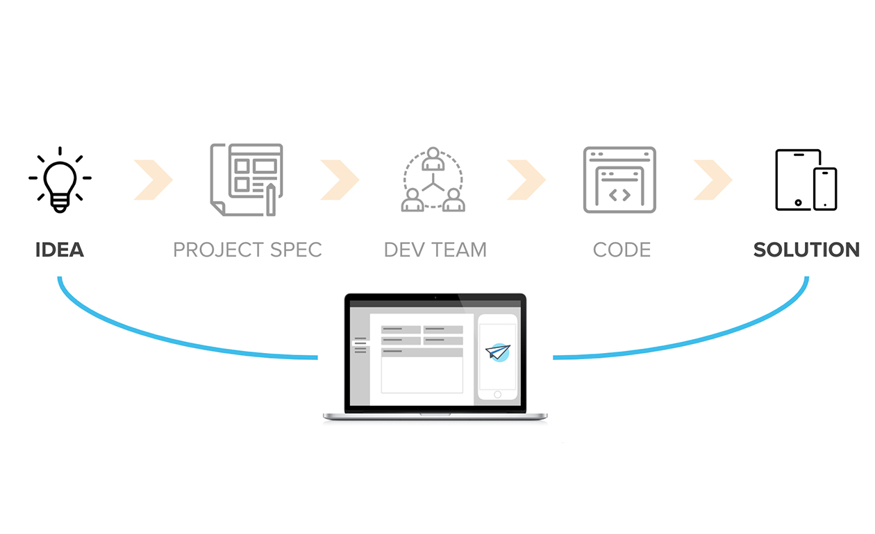 보통 앱 하나를 기존의 코딩 방식으로 구현하려면 2~3개월 정도의 시간과 수천 만원의 돈이 필요합니다. 이렇게 오랜 시간과 많은 돈이 필요한 이유에는 여러 가지가 있겠지만, 가장 근본적인 원인을 꼽자면 앱을 만들기 위해 개발자가 필요하다는 점이죠. 문서를 작성하고, 개발하고 테스트하고 하다 보면 몇 개월이 훌쩍 지나가버립니다.