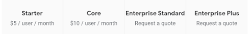 앱시트에는 Free, Publisher Pro, Starter, Core, Enterprise Standard, Enterprise Plus 까지 총 6개의 요금제가 있습니다. 요금은 달러 기준이라서 달러 환율에 영향을 꽤 많이 받는 편입니다.