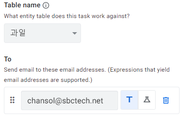 다음으로는 추가된 데이터에 대해서 메일을 보내주도록 하겠습니다. 새로운 Run a task 단계를 생성해 줍니다. Task는 당연히 Send an email 로 선택해 주시면 됩니다. 다음은 Email Type인데요, Embedded app view와 Custom template이 있습니다.