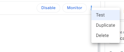 그럴 때 유용하게 사용되는 것이 'Test'라는 기능입니다. Test 버튼은 Automation 기준 오른쪽 위에 위치하고 있습니다.